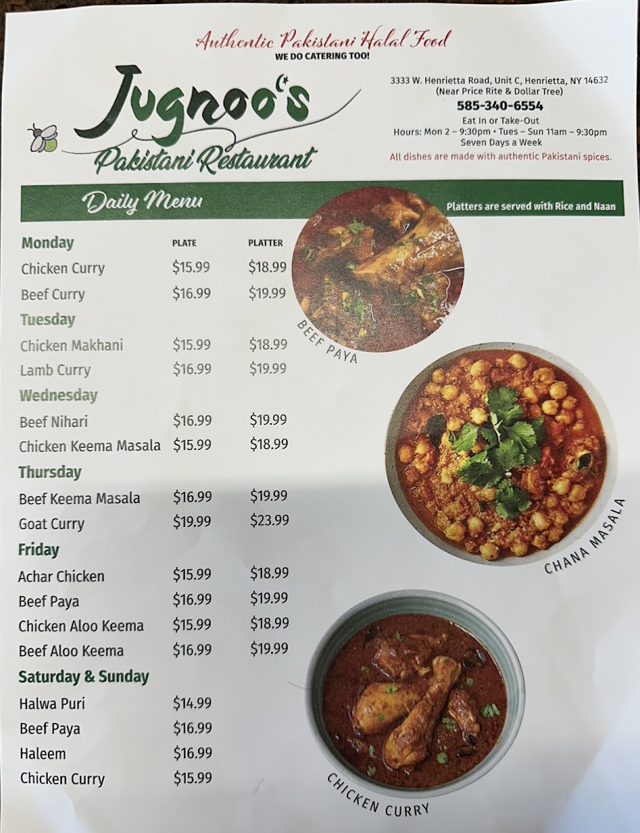 At Jugnoos, located at 3333 W Henrietta Rd Unit C, Rochester, NY, the menu offers a vibrant selection of dishes inspired by rich, authentic flavors. Whether you’re craving something spicy, savory, or a mix of both, the Jugnoos Menu has something to satisfy every appetite. From freshly made appetizers to hearty mains, each dish is crafted with quality ingredients to bring you a true taste of India with a modern twist. The menu features a variety of vegetarian and non-vegetarian options, each prepared with a perfect blend of spices that will take your taste buds on an unforgettable journey. With options that cater to all dietary preferences, Jugnoos ensures that every guest can find something they’ll love. Whether you're dining in or taking out, the flavorful creations are sure to leave you coming back for more.